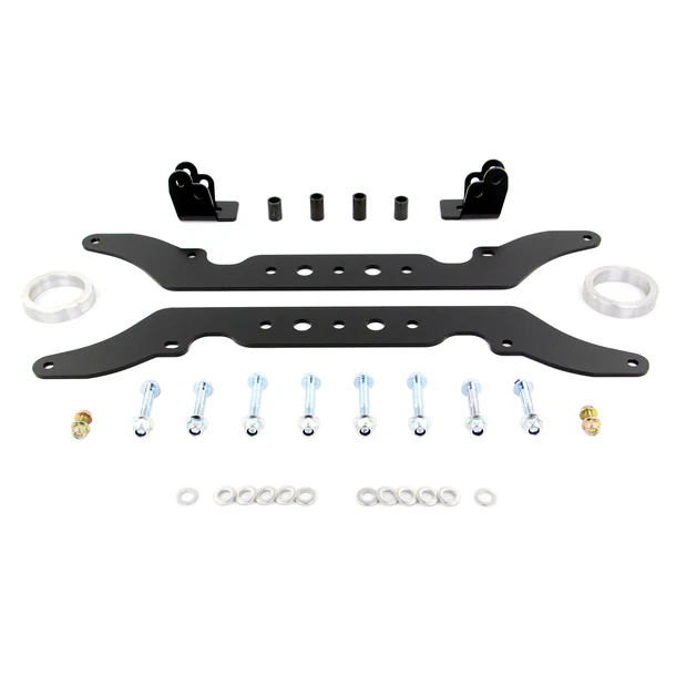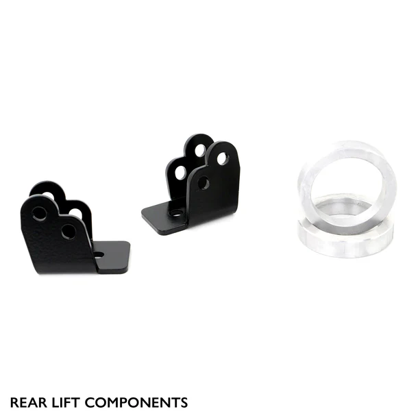 The kit includes front and rear heavy-duty lift brackets, made of 3/16″ thick Canadian steel. It will also include a pair of machined aluminum spring spacers, for the rear. All the components are Laser-cut and CNC bent, for a perfect fit. Complete this with a Quality black Powder coat finish, and you have a product that it was BUILT TO LAST.